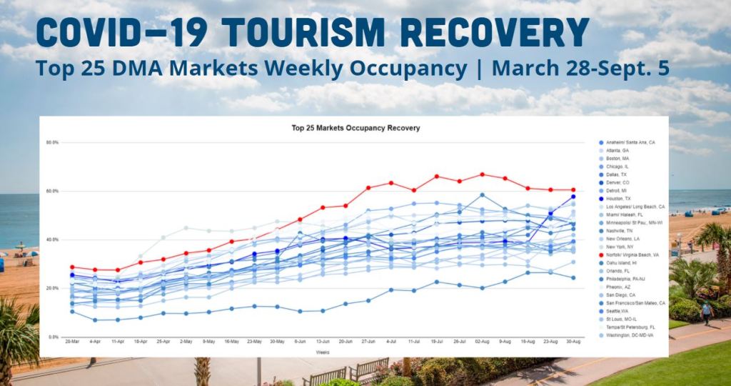 Over the last three months, Virginia Beach has become a shining example of resiliency and recovery despite the disastrous economic fallout from the COVID-19 pandemic. From a destination marketing perspective, it’s been an uphill ascent, with pivotal shifts in creative, audience messaging, target market groups, and safety initiatives to create trust for new and returning visitors from across the nation. The team at the Virginia Beach Convention and Visitors Bureau executed quickly and effectively, due to the nimble marketing approach, Virginia Beach is the number one performing destination in hotel occupancy recovery across the top 25 DMAs in America, week after week.